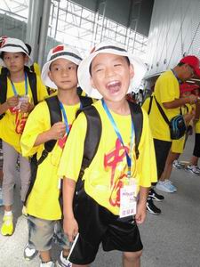 坐飞机、住四星级酒店、看世界大学生运动会比赛、和体育明星面对面、游锦绣中华主题公园、看深圳海、吃肯德基……这些经历对城里面的孩子来说不算什么,可对那些连县城都没到过的山里娃,件件都是“第一次”。8月20至22日, 来自我省大悟县四姑镇武警希望小学、罗田县三里畈镇苗圃希望小学的8名小学生就亲身体验了一次,他们同其他4省的32名小朋友们一起,参加了由中国青少年发展基金会、乔丹体育股份有限公司组织的“乔丹大运行”行活动。中国青基会副秘书长陈燕云、乔丹体育股份有限公司副总经理黄涛等领导及嘉宾出席活动,特邀嘉宾郎平也现身大运会现场,同孩子们一起为大运会体育健儿们加油助威。